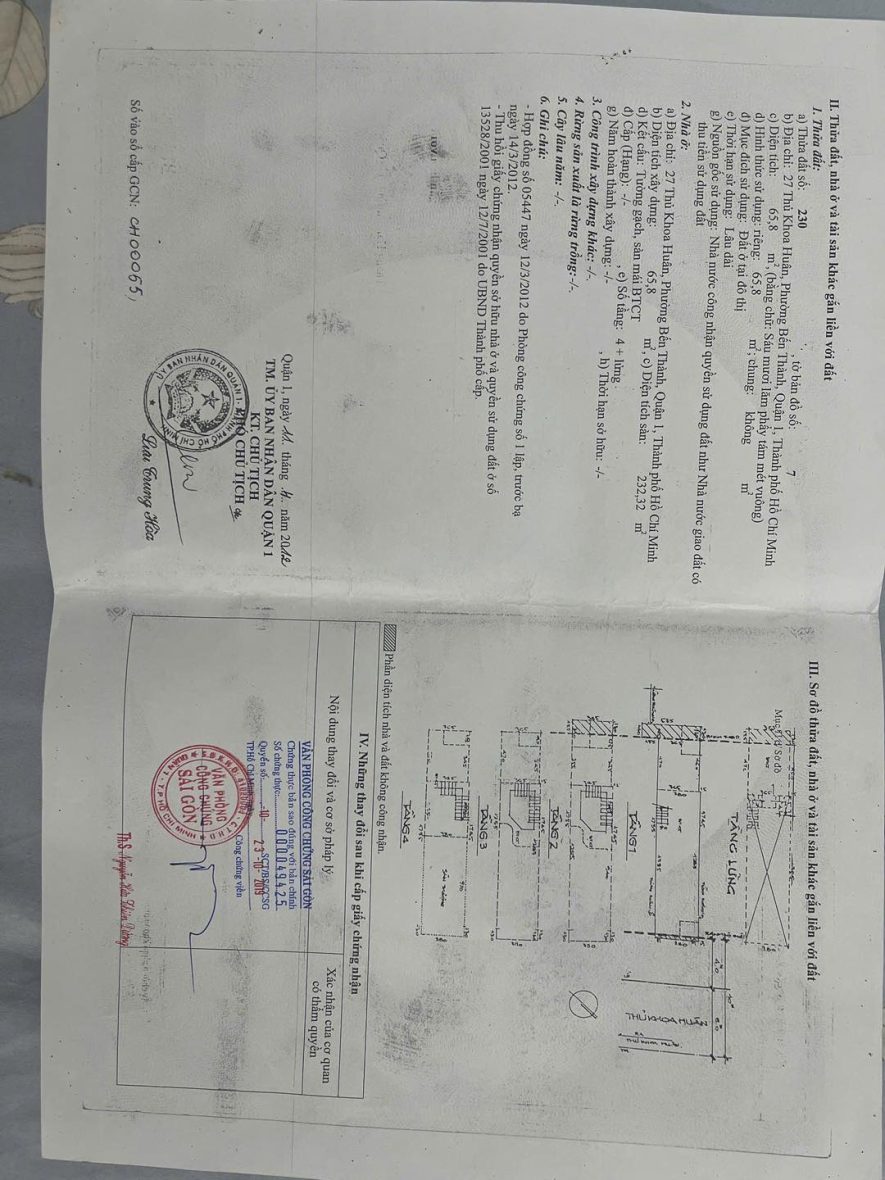BÁN NHÀ MẶT TIỀN ĐƯỜNG THỦ KHOA HUÂN – QUẬN 1