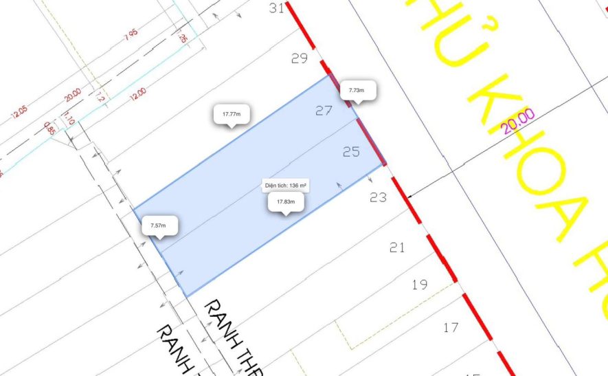 – Diện tích đất công nhận: 133m² (7,8m x 17,6m)
